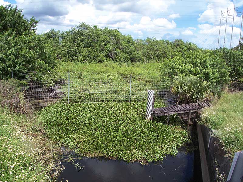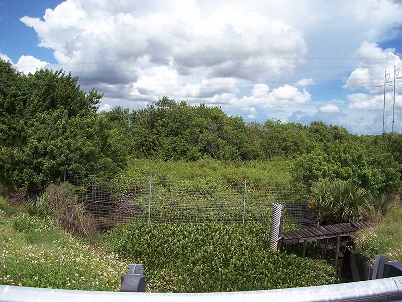 The photos in this file are of the location on the Florida Turnpike where Adam’s severed head was found. In 1981 this location was mile marker 130. Due to the extension of the turnpike to Homestead Florida, all the mile markers have changed and it is now mile marker 174. The footbridge was used to provide access to a water measuring device but has not been used in quite some time and the Lock Box with the measuring device is gone. You can see how much the area has changed over the past 30 years. The foot bridge is dilapidated. The water lever has dropped dramatically and the pond is overgrown with water hyacinth. The fence is still there. Although in the 1981 photo it is difficult to see due to the blue water.