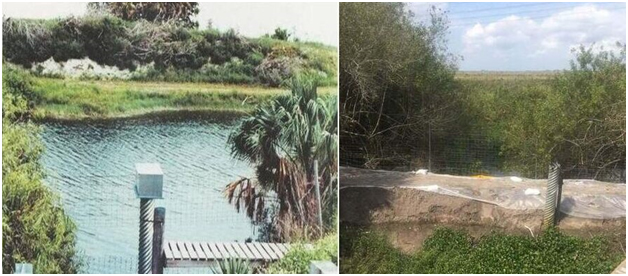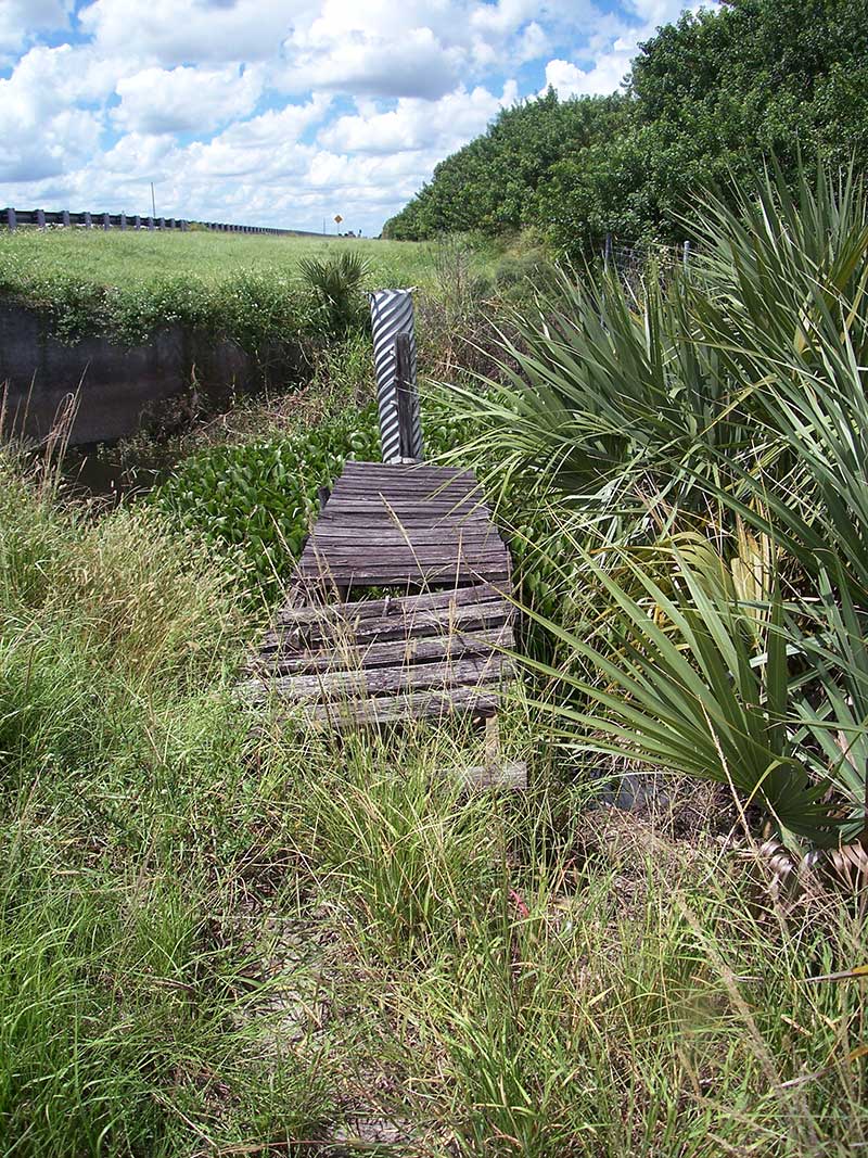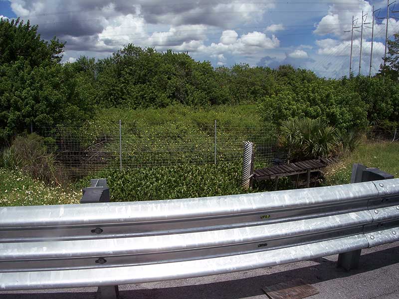 The photos in this file are of the location on the Florida Turnpike where Adam’s severed head was found. In 1981 this location was mile marker 130. Due to the extension of the turnpike to Homestead Florida, all the mile markers have changed and it is now mile marker 174. The footbridge was used to provide access to a water measuring device but has not been used in quite some time and the Lock Box with the measuring device is gone. You can see how much the area has changed over the past 30 years. The foot bridge is dilapidated. The water lever has dropped dramatically and the pond is overgrown with water hyacinth. The fence is still there. Although in the 1981 photo it is difficult to see due to the blue water.